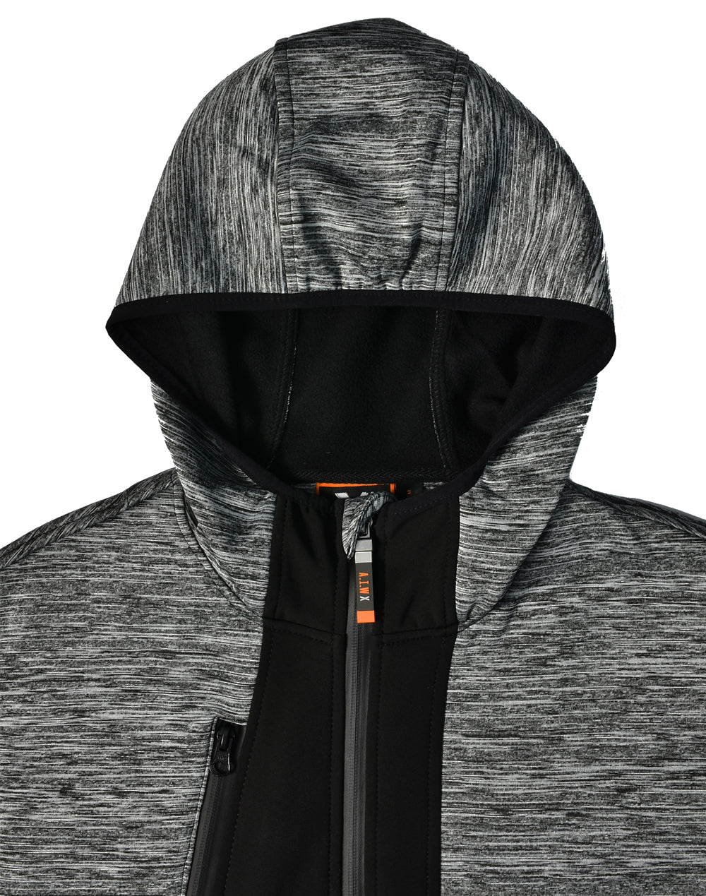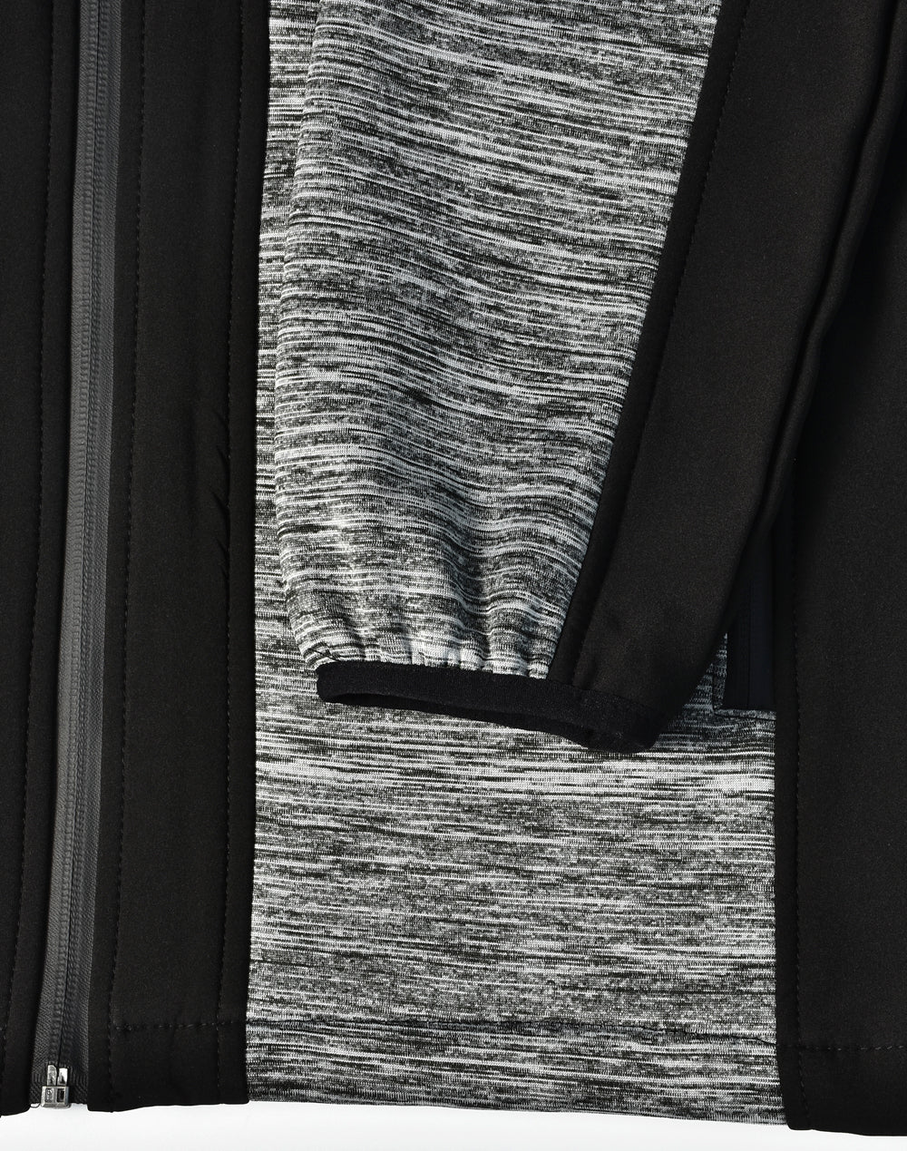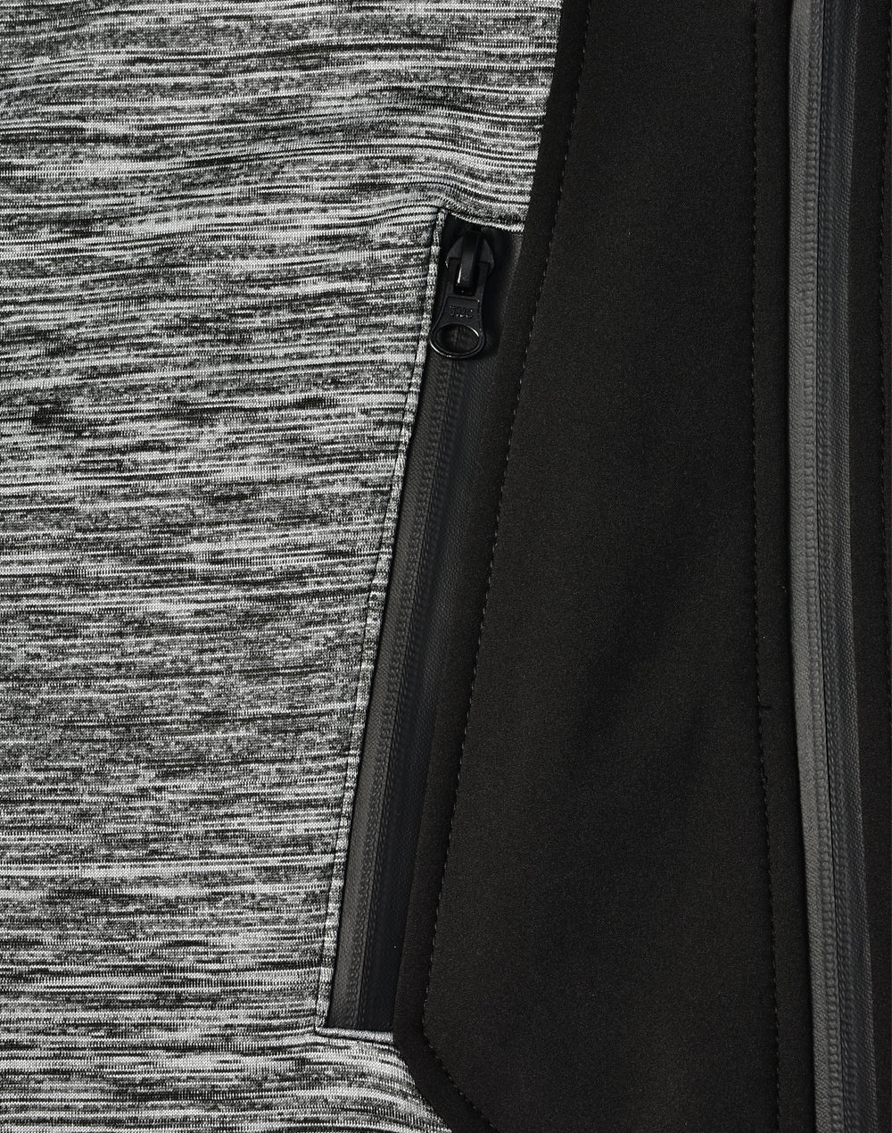 - Outer main fabric is heather feature knit