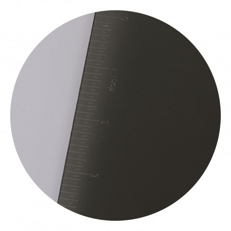 Transparent A4 clipboard with a ruler on each edge, measuring up to 25cm and 10 inches. The clipboard is made from PS with an iron clamp and a wall hook for easy storage.