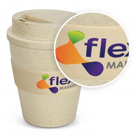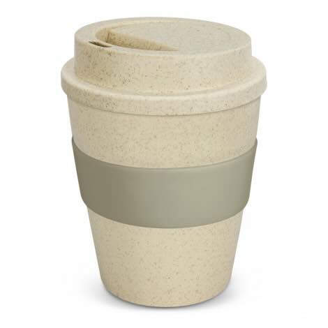 Classic 350ml reusable coffee cup which is manufactured from a 50/50 blend of natural rice husk fibre and BPA-free polypropylene. Other features include a secure screw on lid and a heat-resistant silicone band. An optional natural gift box is available on request. This product is not dishwasher safe and handwashing is recommended.