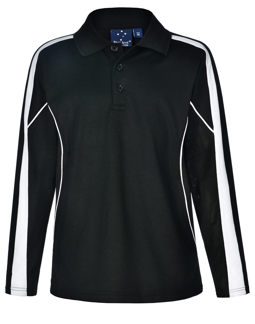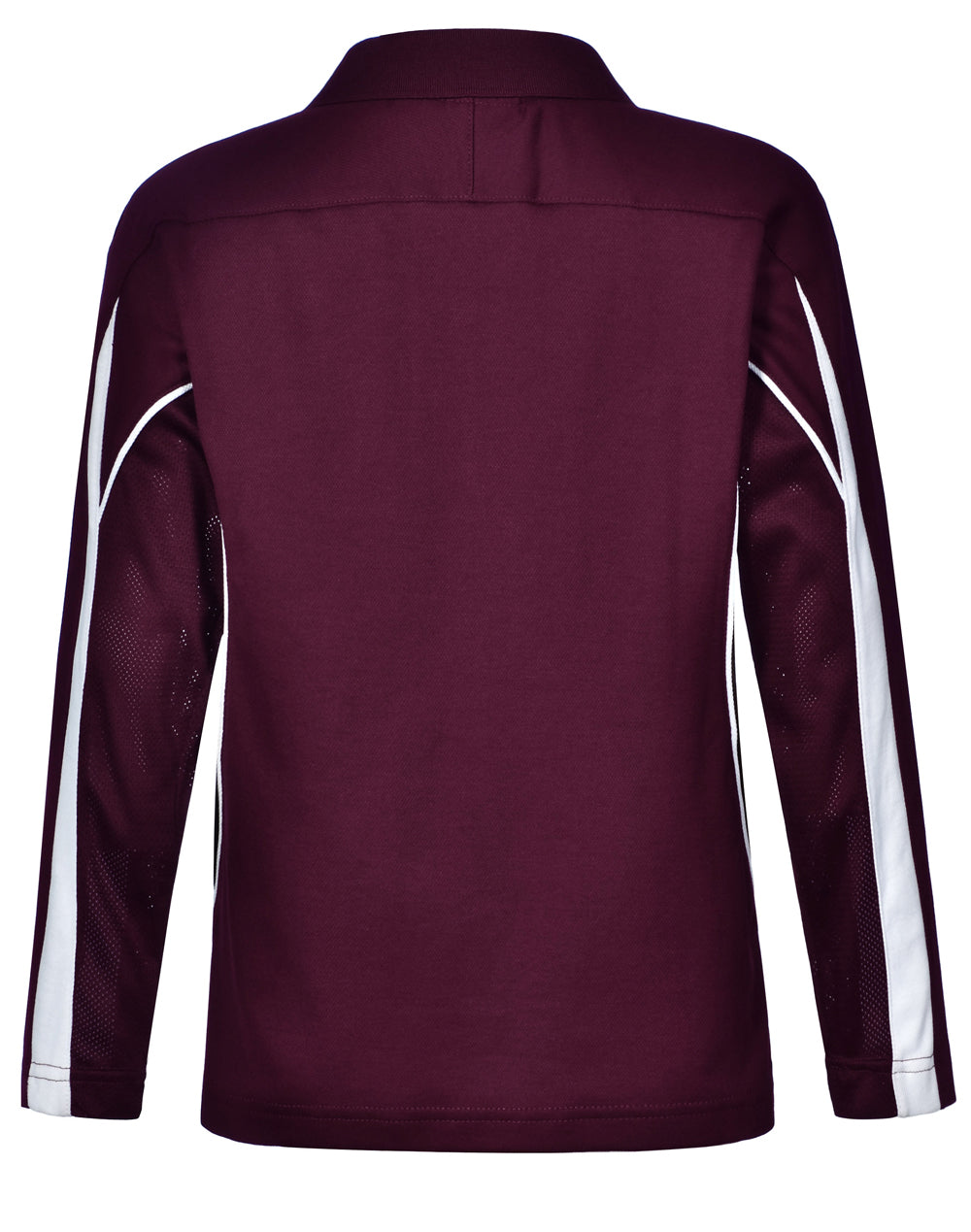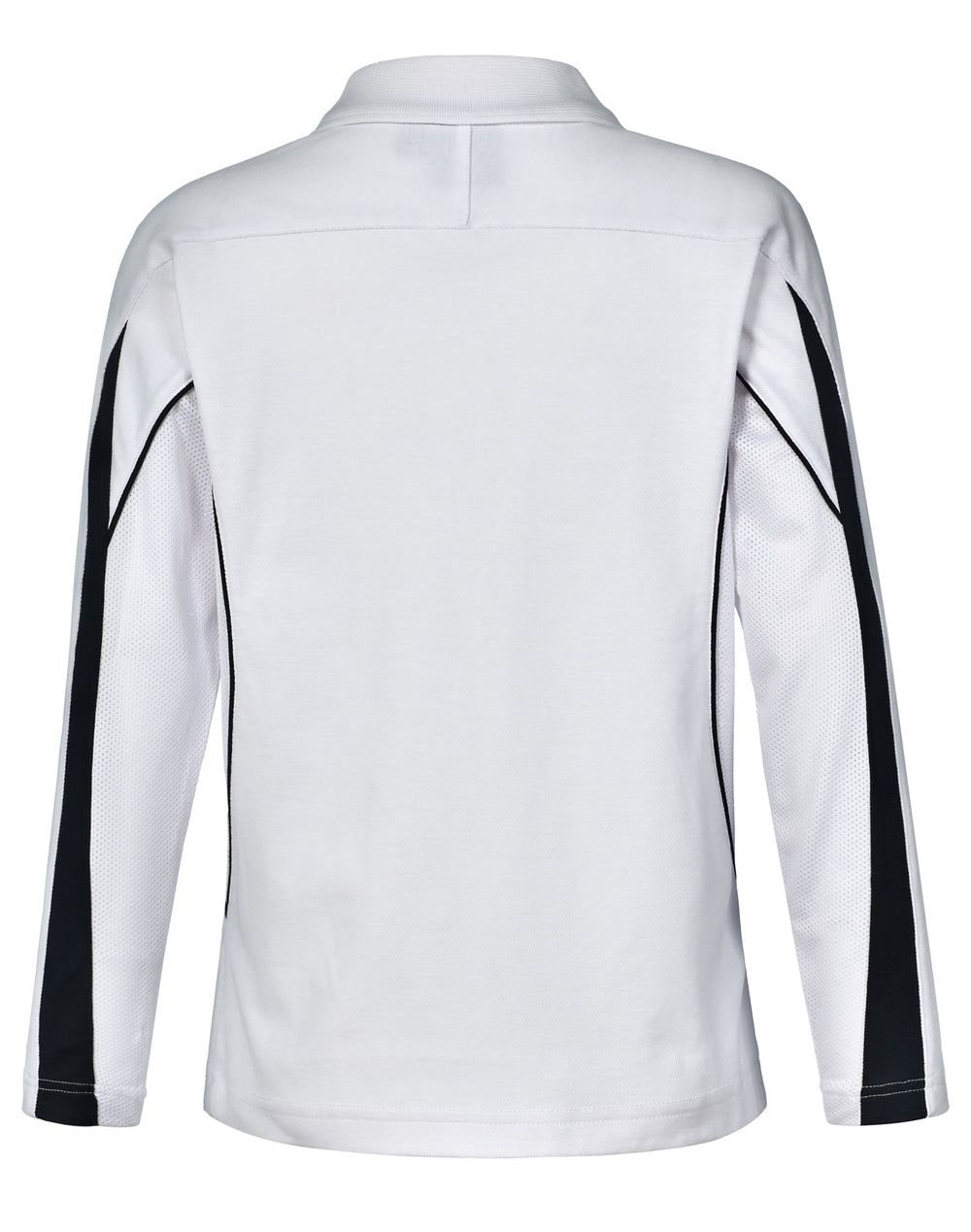 Description: Breathable mesh panels under arms & on sides. Long sleeves. Contrast panels and piping on shoulders and sleeves-front and back.