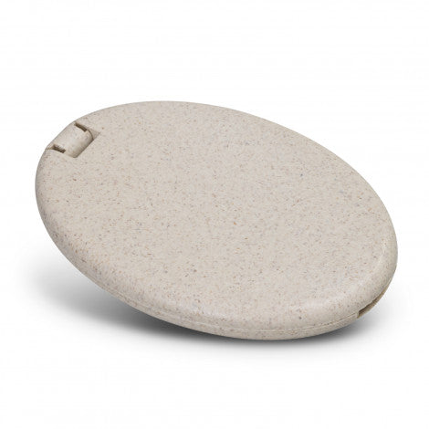 Practical sewing kit manufactured from AS + Wheat straw, containing four different thread colours and a needle. It features a needle threader, safety pin, spare button, and a mirror.