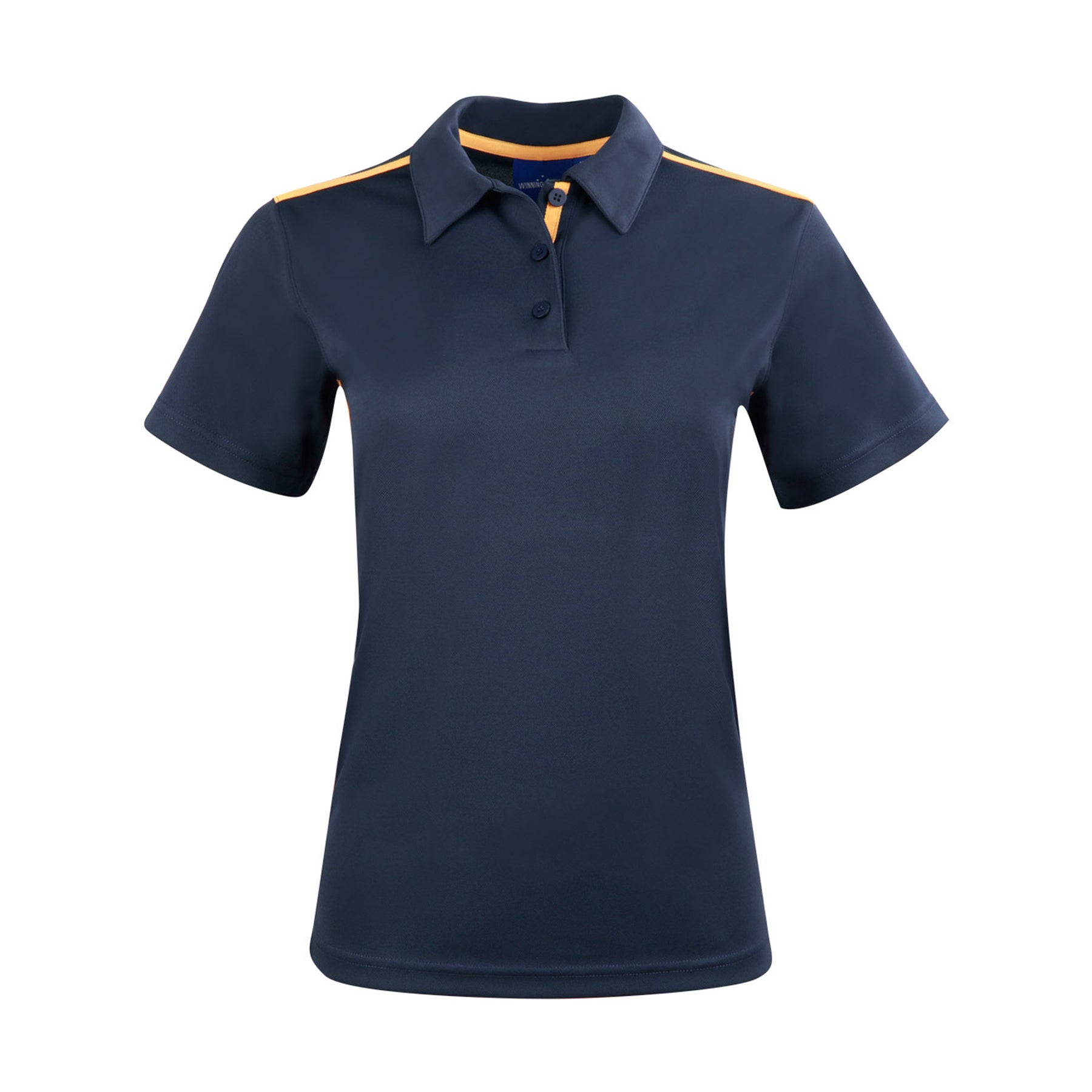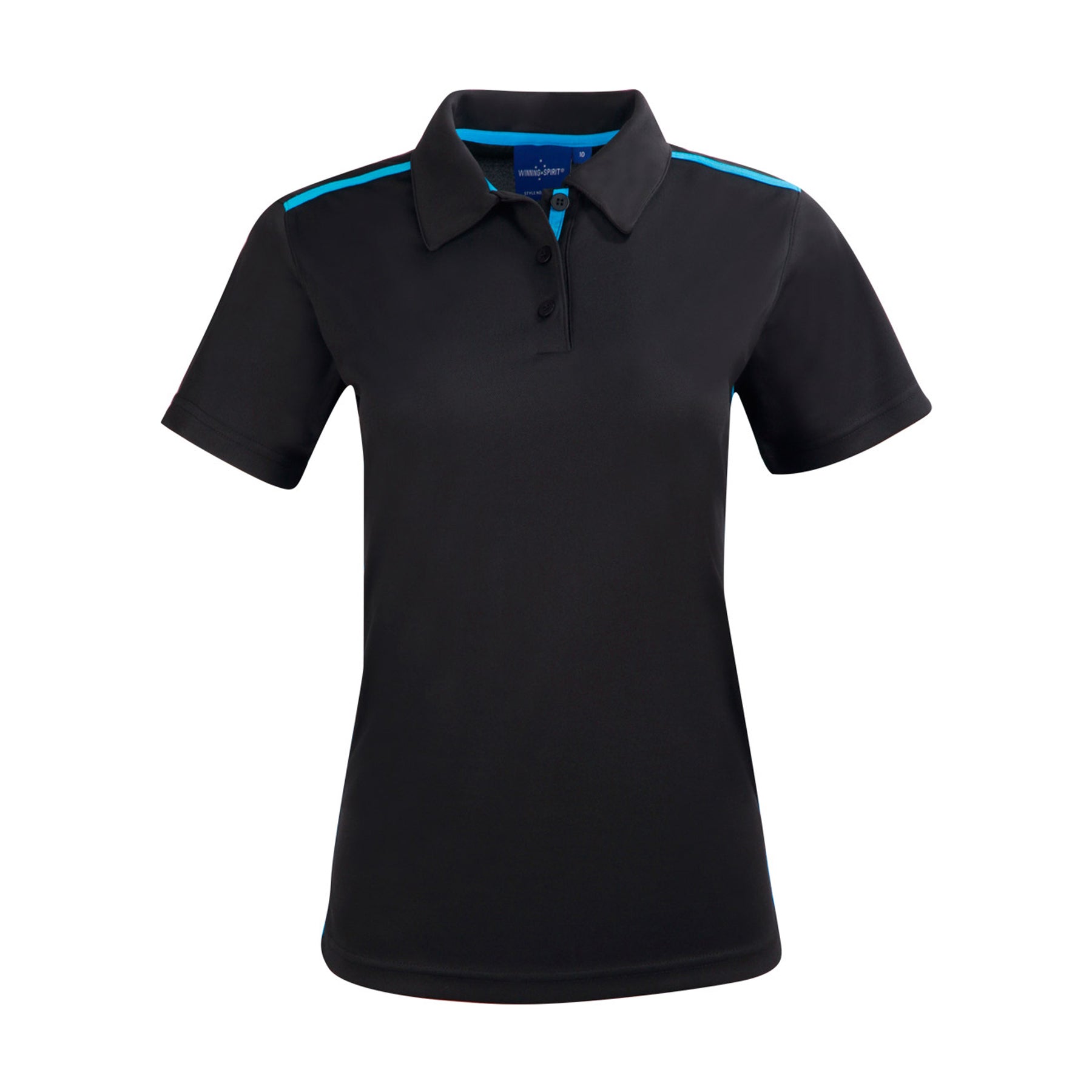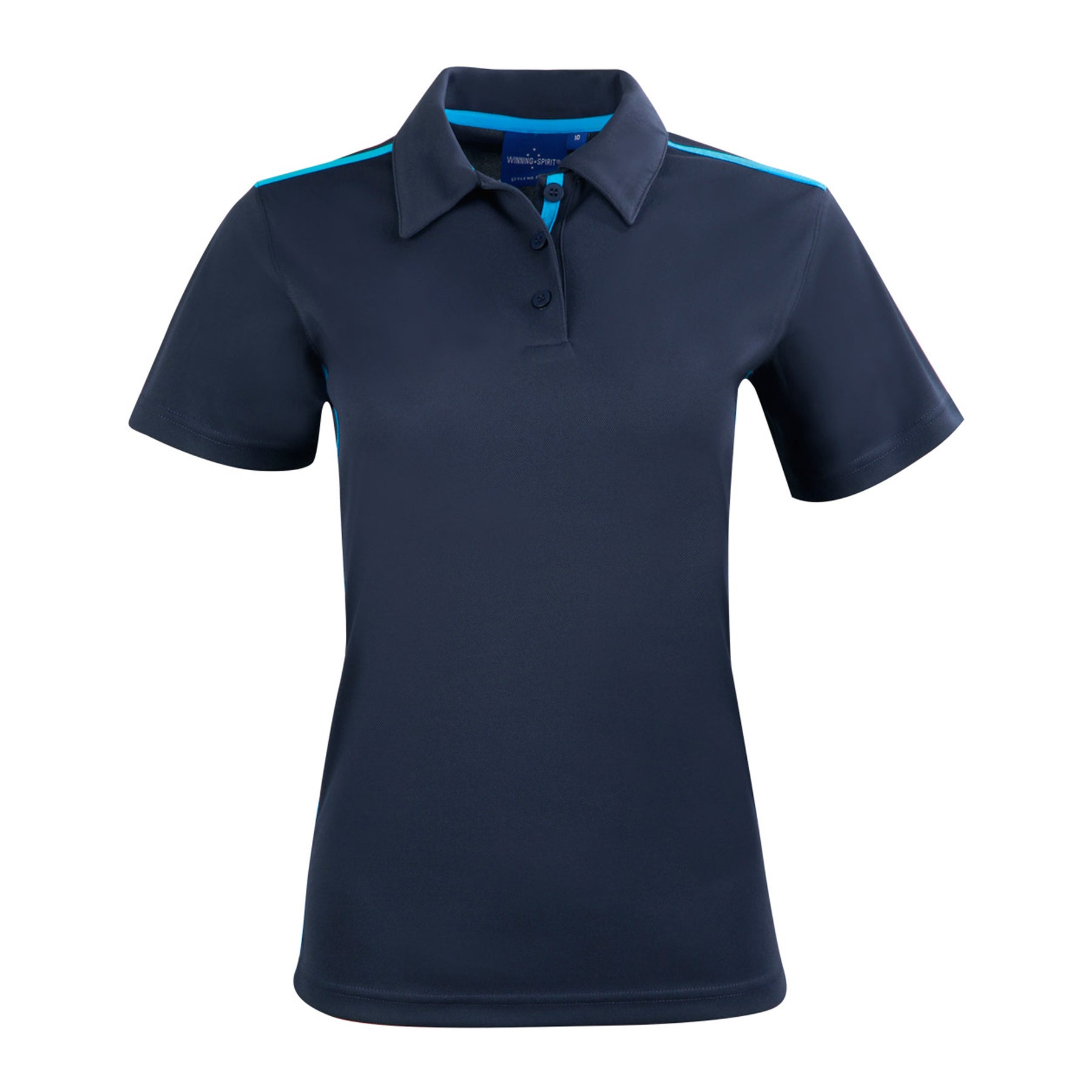Description: Fine pique fabric with contrast stretch tapes onshoulders, inner placket and body sides, selffabric collar. UPF 30+ UV protection.